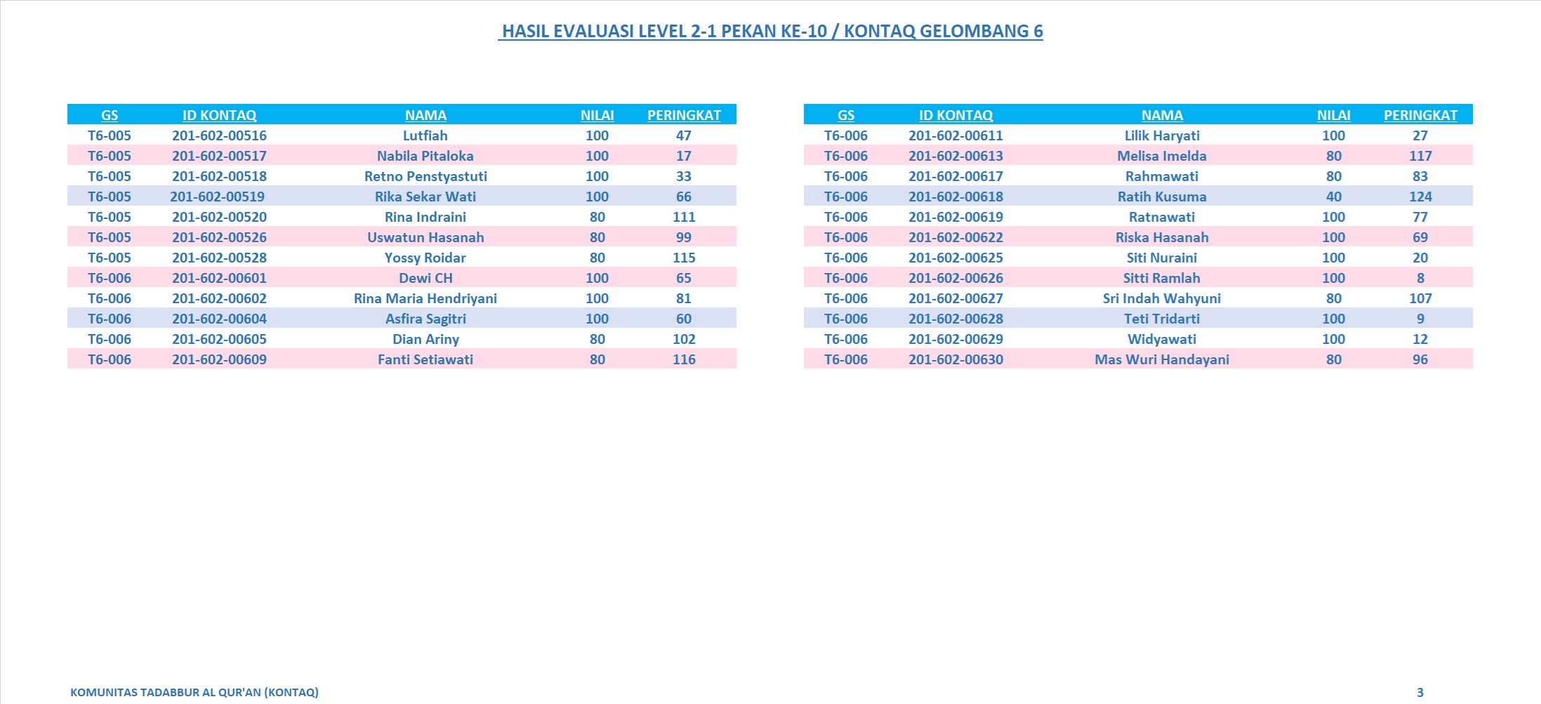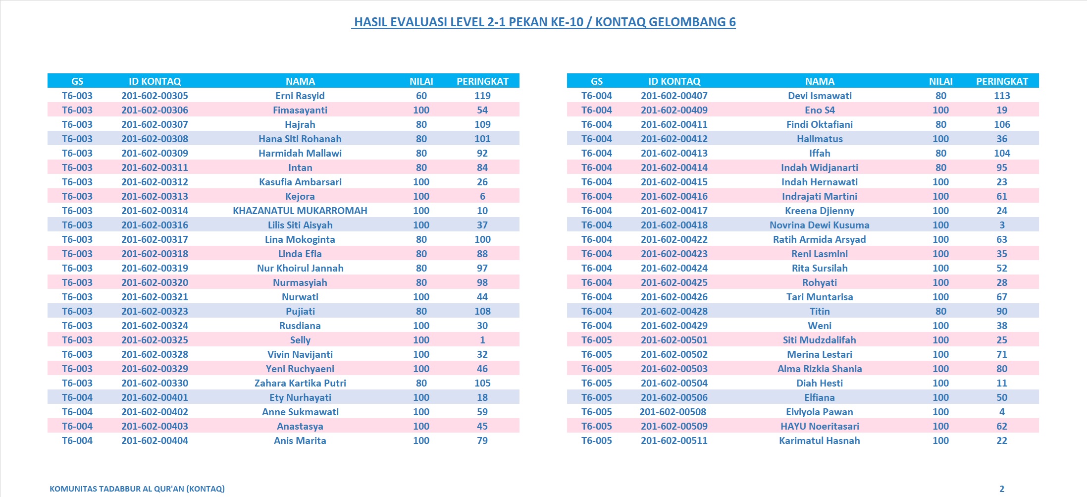 • Hasil Evaluasi Level 2/6 Pekan 17/G2