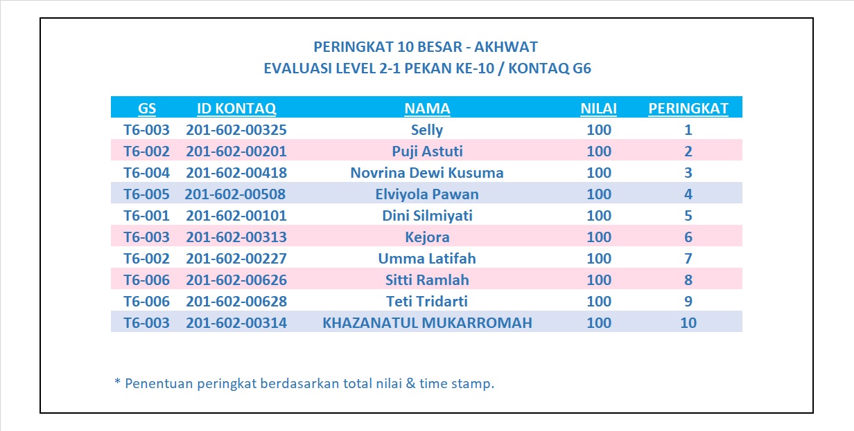 Hasil Evaluasi Level 2/1 Pekan 10/G6